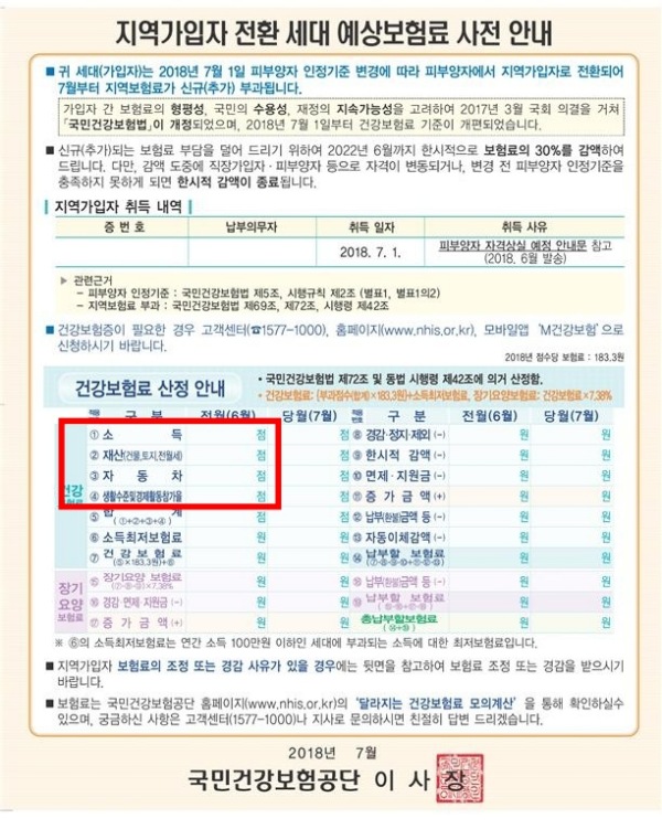 말리부 중고차 구매자 중 무직, 일반 사업자에 해당하는 분이라면 지역 의료보험에 가입으로 월마다 보험료를 내게 됩니다.