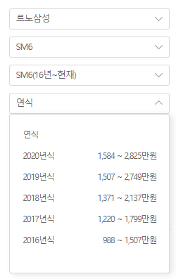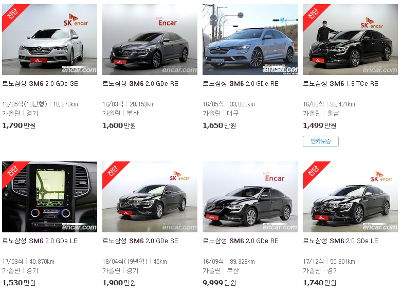 자 그럼, 르노삼성 SM6 중고차 시세를 확인해 보았으니 원하는 중고차 가격을 확인해 봐야겠습니다.