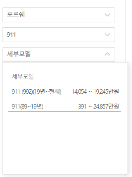 991 모델의 시세는 기간이 긴 만큼 폭넓은 가격이 형성되어있죠.