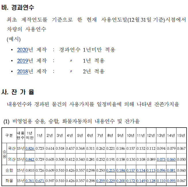 수입과 국산의 연식에 맞춰 잔가율을 적용하여 시가 표준액을 산출합니다.