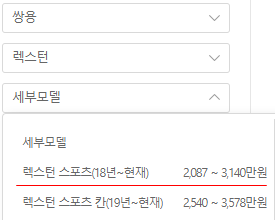 그럼 쌍용 렉스턴 스포츠 중고차 가격을 확인해 보죠.
