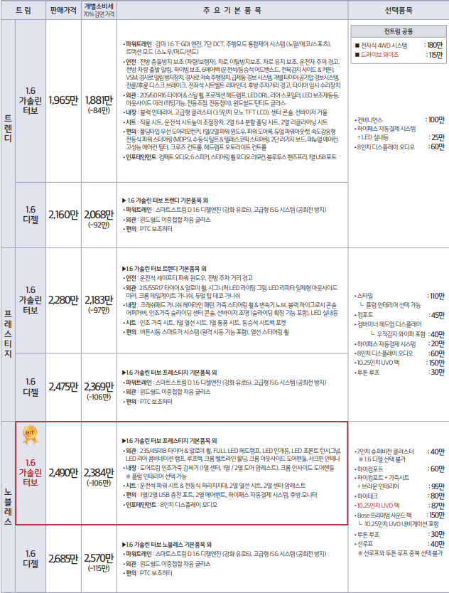 | 셀토스 1.6 터보 가솔린 | |